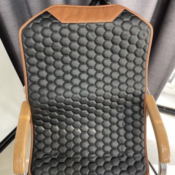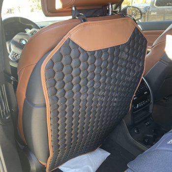 Kick mat made of very soft eco-leather, easy to clean and setup. It does an excellent job of protecting the seat back upholstery from dirty shoes. Can highly recommend