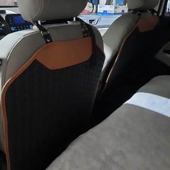 High-quality seat back protectors, we tried a few and have something to compare... Our children are super active, they never sit quietly and constantly rest their feet or kick the back of the seat... Previously, we bought transparent protectors that torn almost immediately... Of course, these are more expensive, but they worth the money! Sewn from a dense material and definitely have several layers inside, since they’re quilted and elastic. Thank you!